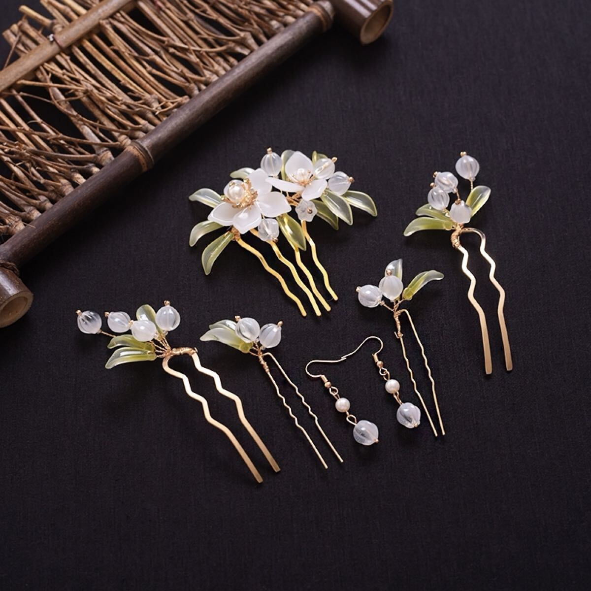 - 簪(かんざし) 作家 髪飾り《ペンタス》 7点セット アクセサリー 髪飾り
