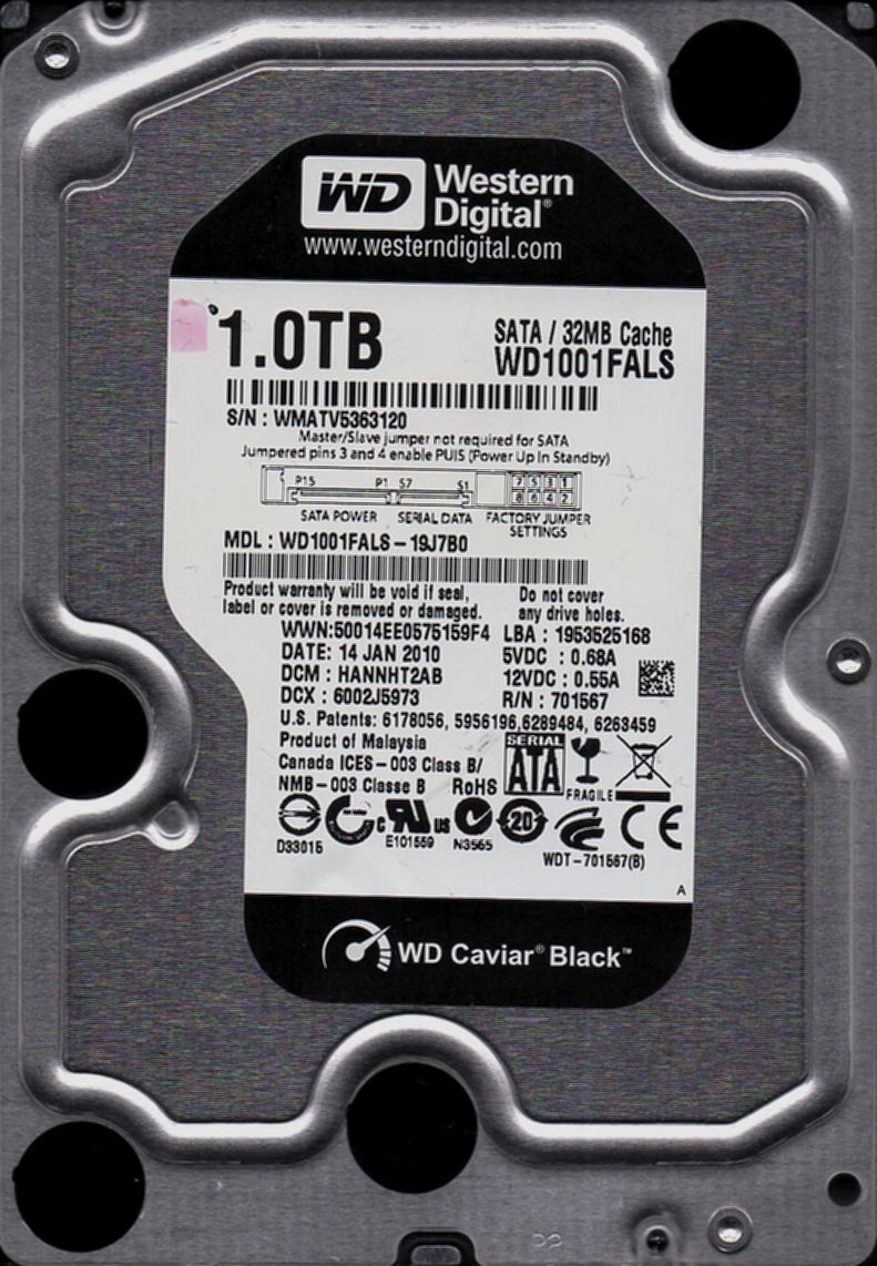 - WesternDigital WD1001FALS-19J7B0 1.0TB SATA 7200rpm 2060-701567-000 REV A