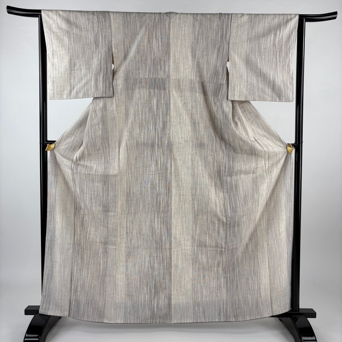 > 紬 身丈165cm 裄丈63cm S 袷 縦縞 クリーム 正絹 秀品 【中古】