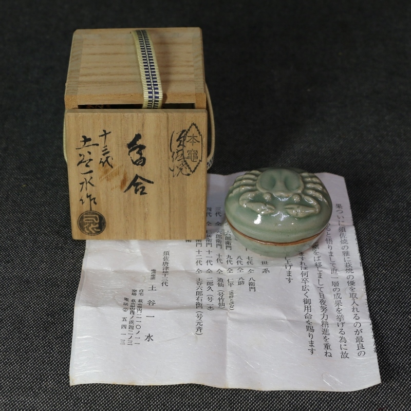 - ★須佐唐津焼 十三代 土谷一水 蟹香合 共箱 茶道具★