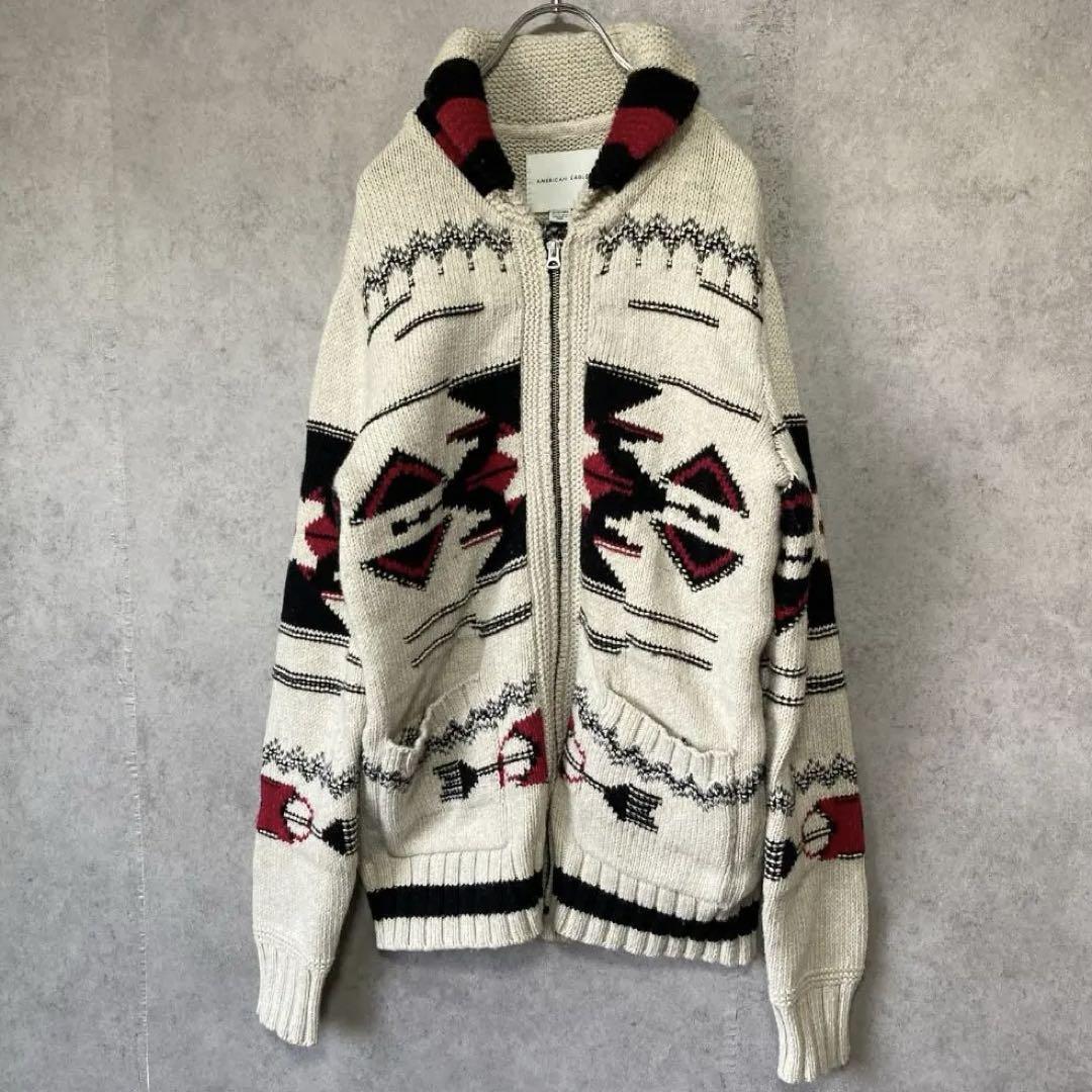 - アメリカンイーグル(XS)ニットジャケット*ノルディック*ジップアップ*ウール