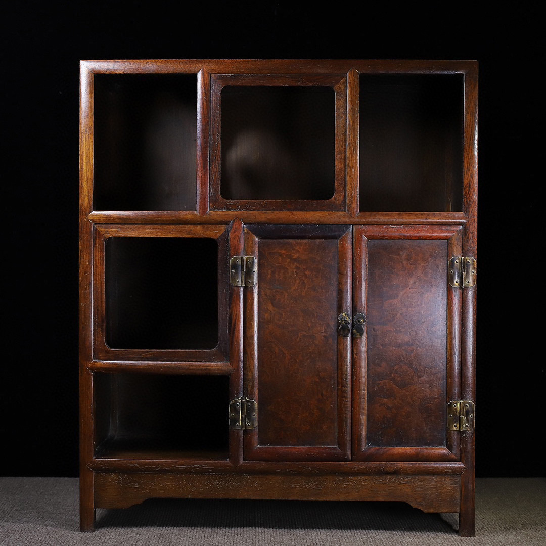 - 清時代 古黄花梨木彫 天然紋 圈口影木 茶水棚 儲物櫃 箪笥 古玩家具 極細工 古賞物 古美味 旧家蔵出し 東洋彫刻 時代物 骨董 中国古美術