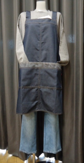 - 男女兼用エプロン ウエストボタン 02ブルー色 ★Dstudio★ 綿 65%ポリエステル35% M~L寸 着丈90cm 21256