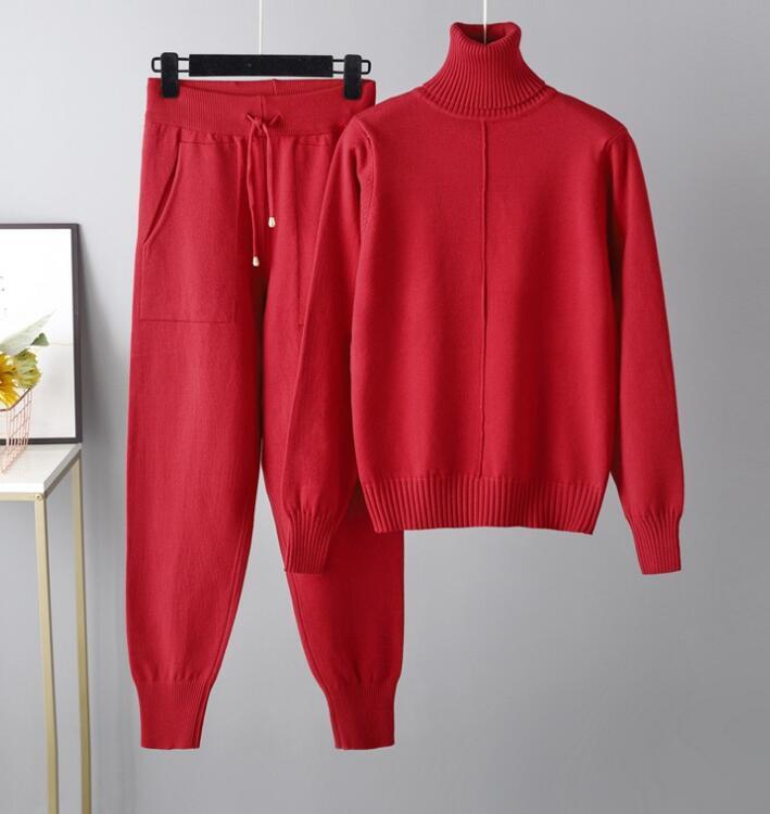 - 343 パンツスーツladiesレディース ◇ カジュアル 上質 ニット素材 防寒 タートルネック red