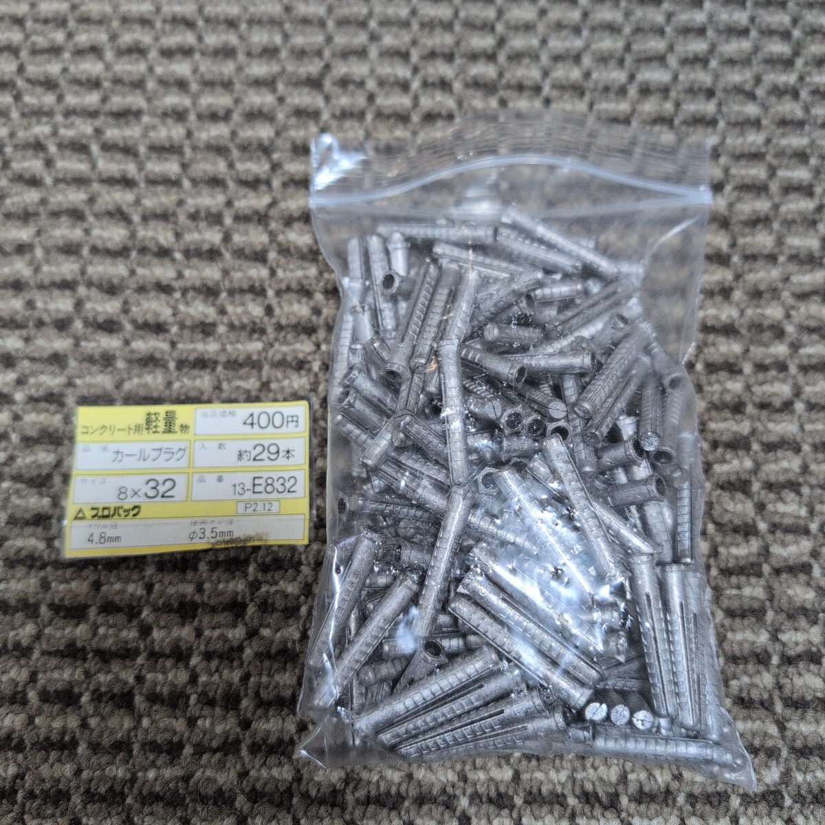> ジャンク品/長期保管品/WAKAI/若井産業/カールプラグ/CARL/13-E832/#8×32mm/コンクリート用/ドリル径4.8mm/使用ネジ径Φ3.5mm/1P200本入り