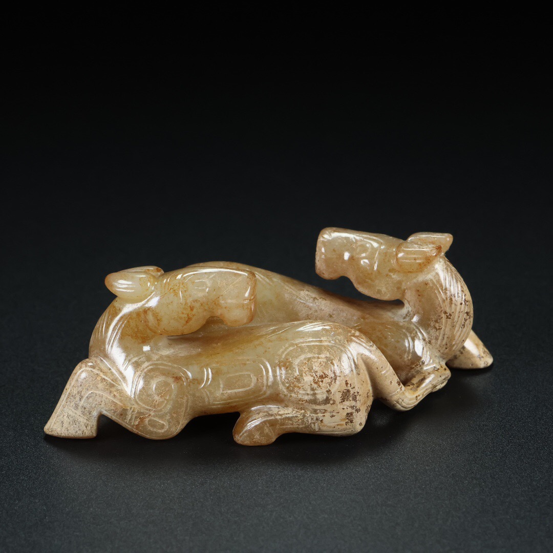 - ▽鴻▽ 和田玉製 細密彫 雙歡 置物 賞物 古賞物 古董品 時代物 稀少珍品 中国古玩 中国古美術