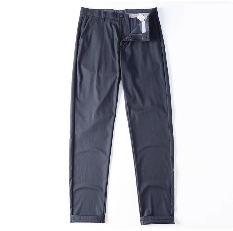 > 人気品新品 テンセル混 イージーパンツ メンズ サマー スラックス スリム ストレッチ 防シワ 薄 春夏 パンツ テーパード シルクタッチ/紺