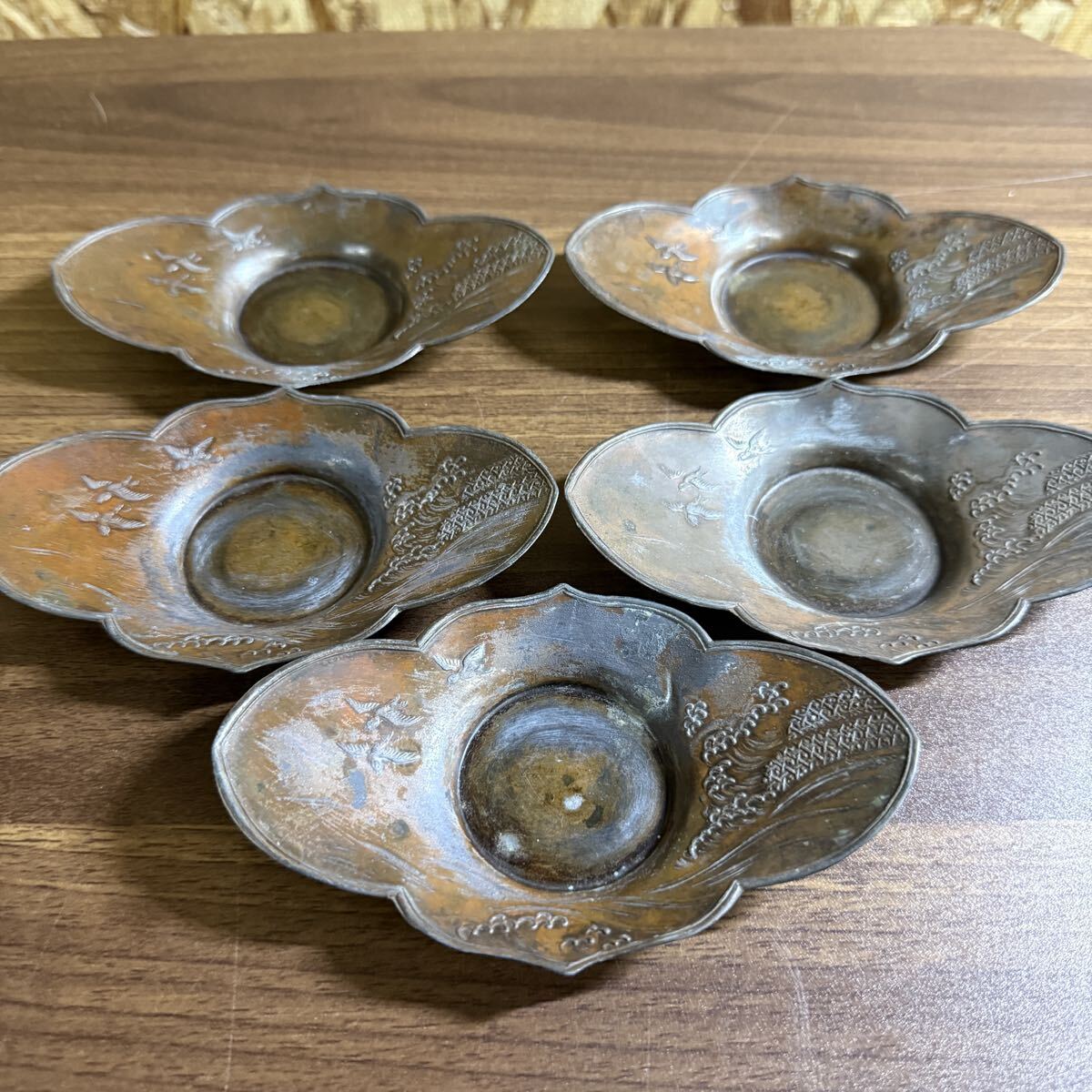 - 茶托 銅製 茶道具 五客 久輝 アンティーク インテリア コレクション 中古品