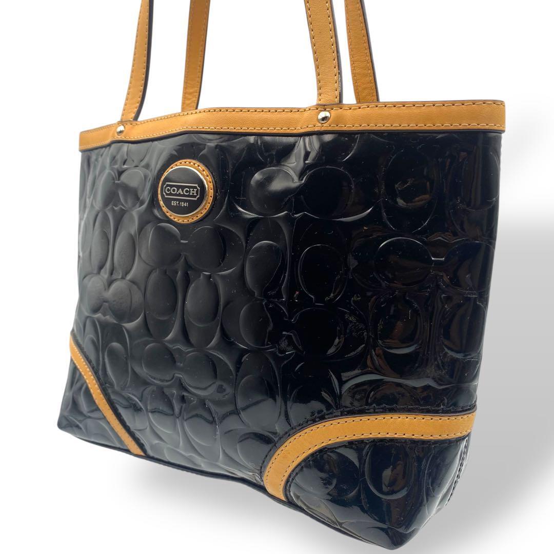 - 美品 COACH コーチ ハンドバッグ シグネチャー エナメル レザー ブラック