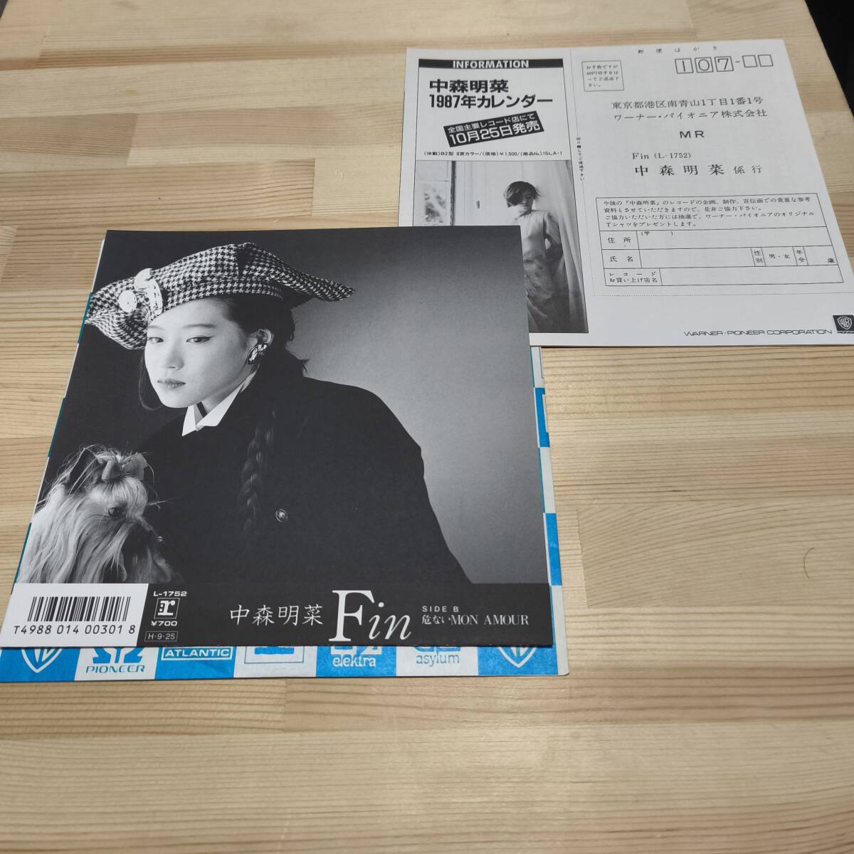 > 美盤 美品 ハガキ 付き 中森明菜 EP レコード Fin 危ない MON AMOUR EP レコード アナログ盤 シングル 7inch 7インチ 昭和 80S