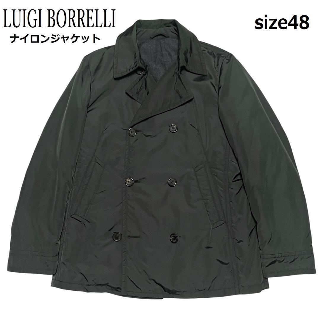 - 【美品】LUIGI BORRELLI ルイジボレッリ テーラードジャケット ナイロンジャケット 48 L ダブルジャケット カーキ オリーブ