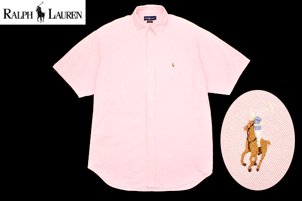 > Y-9862★送料無料★Ralph Lauren ラルフローレン YARMOUTH★ピンク ポニーロゴ刺繍 ボタンダウン 半袖 オックスフォードシャツ 17-35
