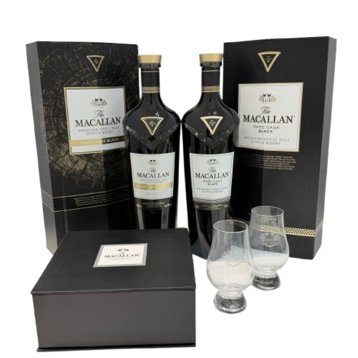 - 【MACALLAN/マッカラン】RARE CASK BLACK/レアカスクブラック 2つおまとめ シングルモルトウイスキー 700ml×2 グラス付き★60099