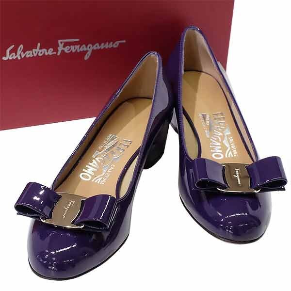 - 送料無料 本物 美品 SalvatoreFerragamo サルヴァトーレフェラガモ レディース ヴァラリボン パンプス 01B221 カーフパテント 4 1/2 紫