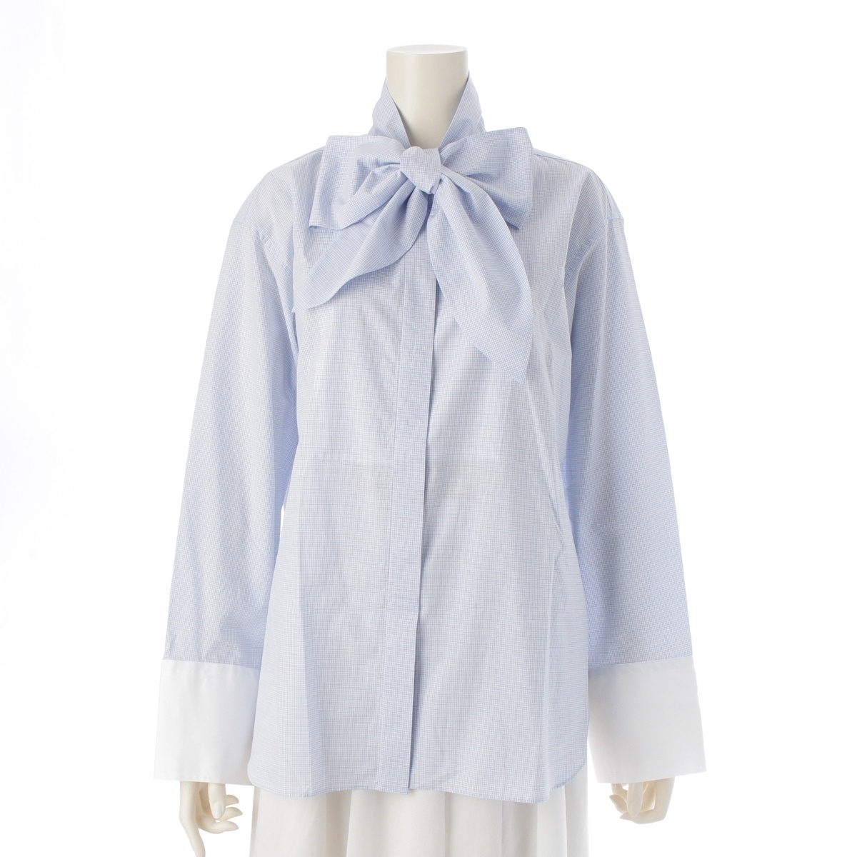 - ドゥロワー SPRING タイ ブラウス 6511-299-0545 ライトブルー ホワイト 36【中古】