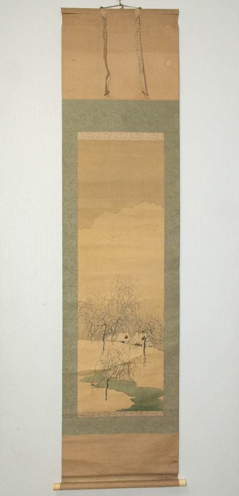 - 【模写】耕山 残雪 掛軸 絹本 日本画 和風インテリア