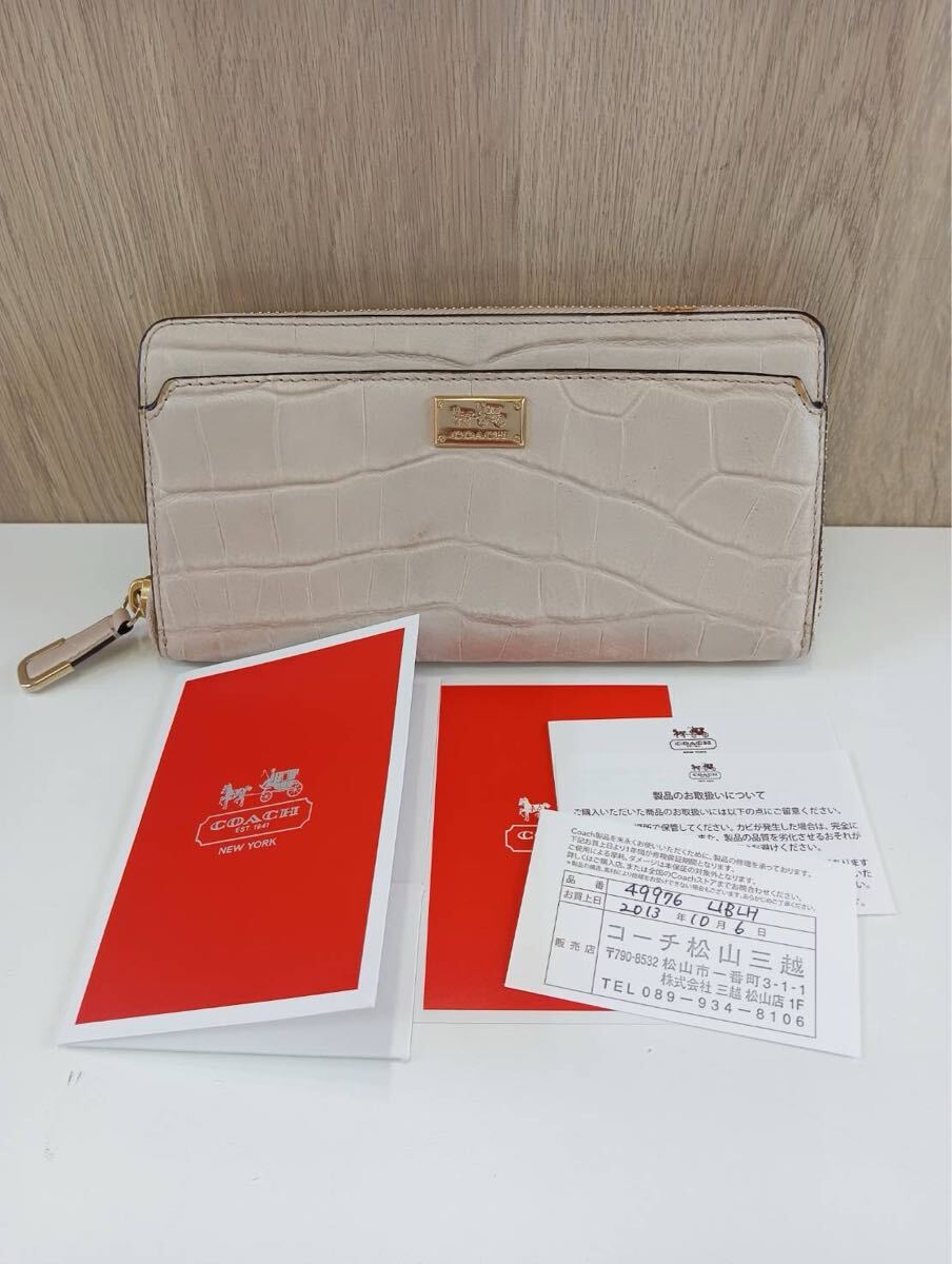- 【中古品】COACHコーチ クロコ型押し ラウンドファスナー 長財布 ライトピンク レザー ファッション小物 財布 現状品