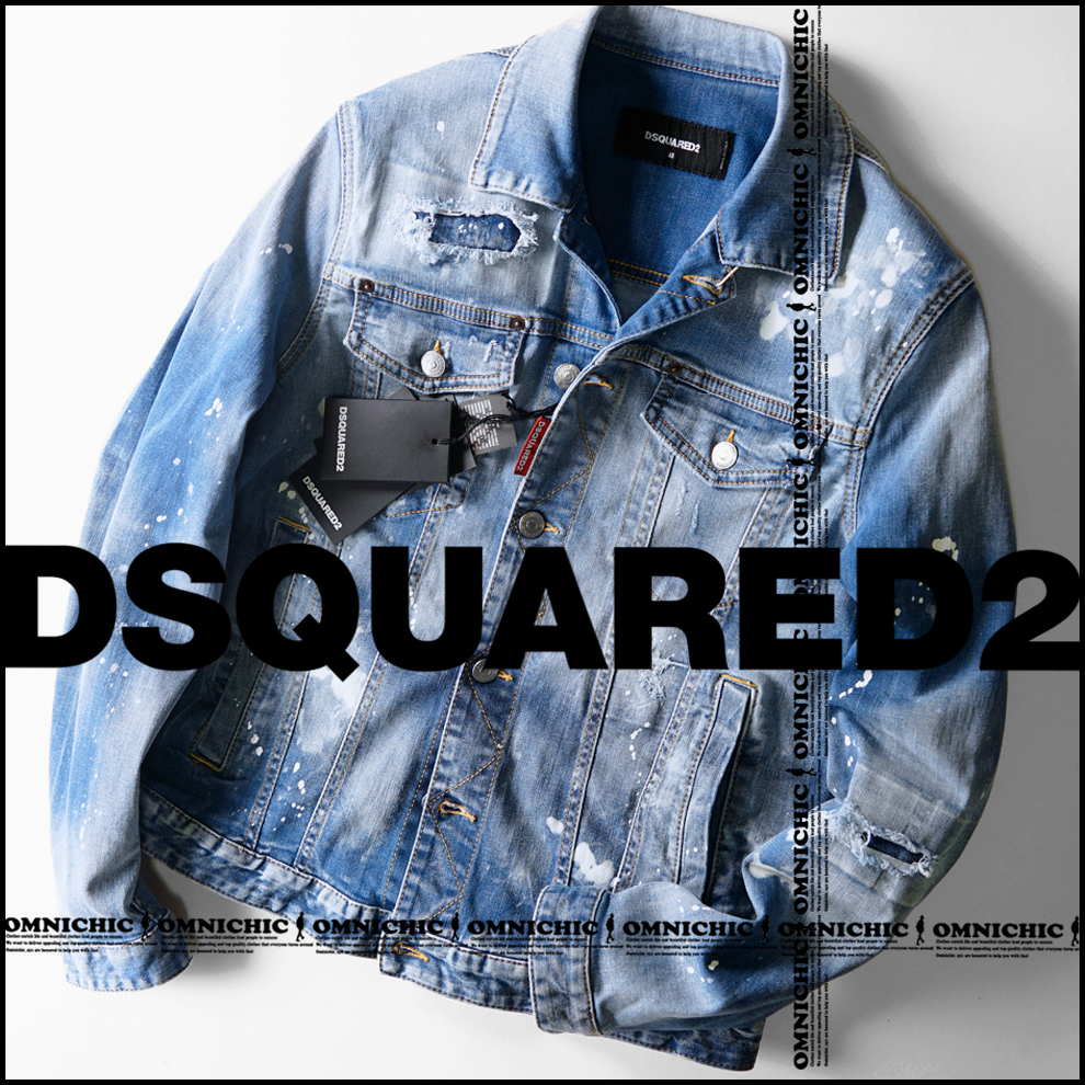 - これぞ拘りのD2■新品148,500円【DSQUARED2】ディースクエアードインパクト抜群クラッシュリペアストレッチエイジングデニムジャケット 50