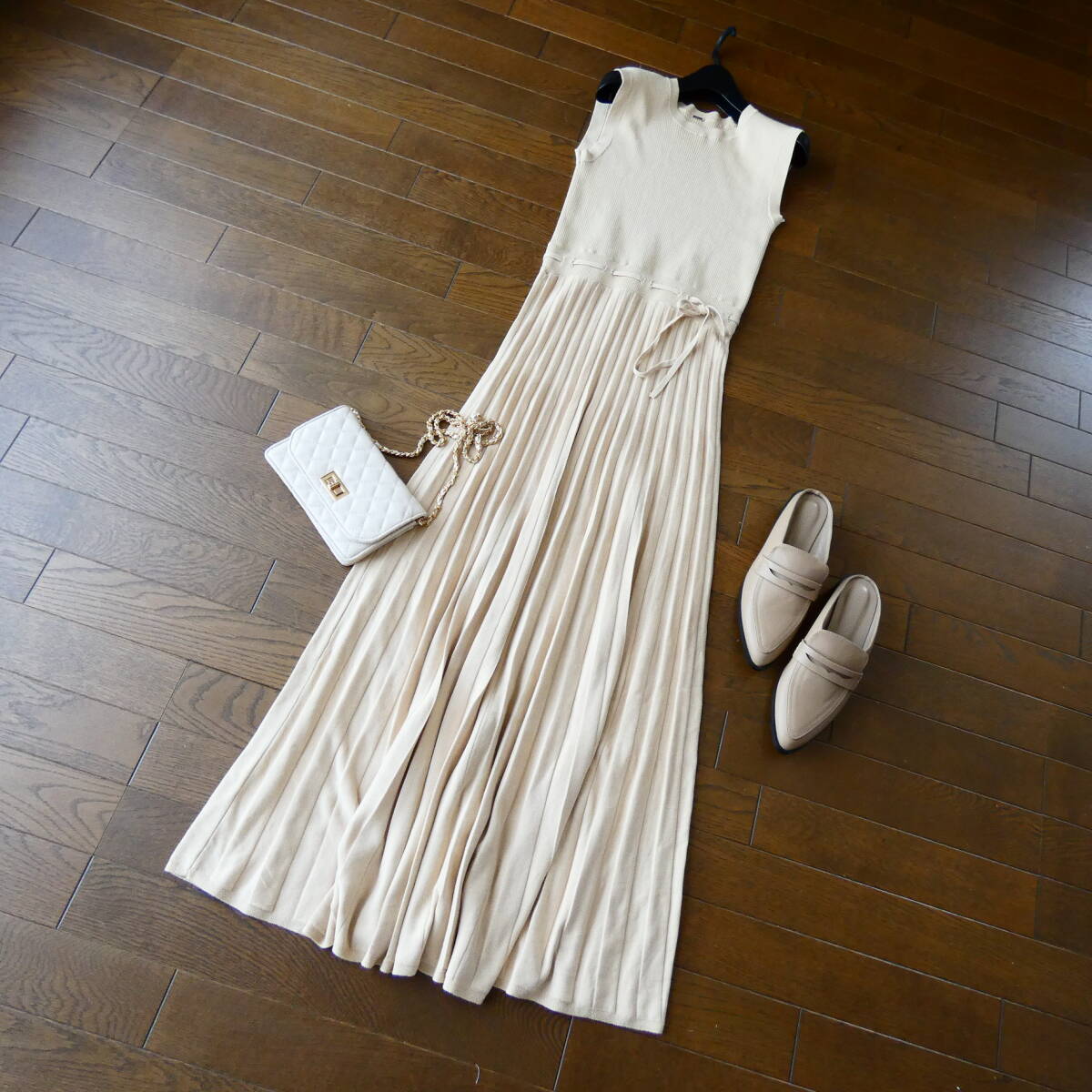 - Milaowen ミラオーウェン ベージュ ノースリーブ ニットワンピース 0