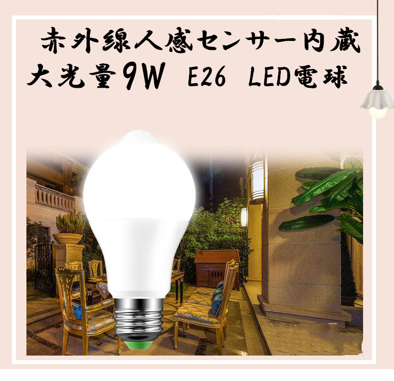 - 9W高輝度 赤外線人感センサー 明暗センサー LED電球 ホワイト 電球色 E26口金 1個入り 昼光色