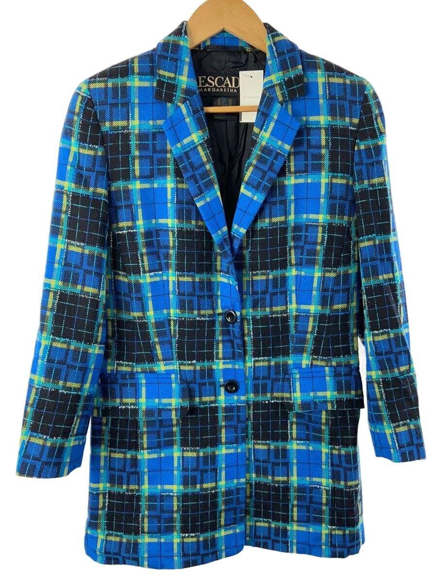 - ESCADA◆テーラードジャケット/38/ウール/BLU/総柄