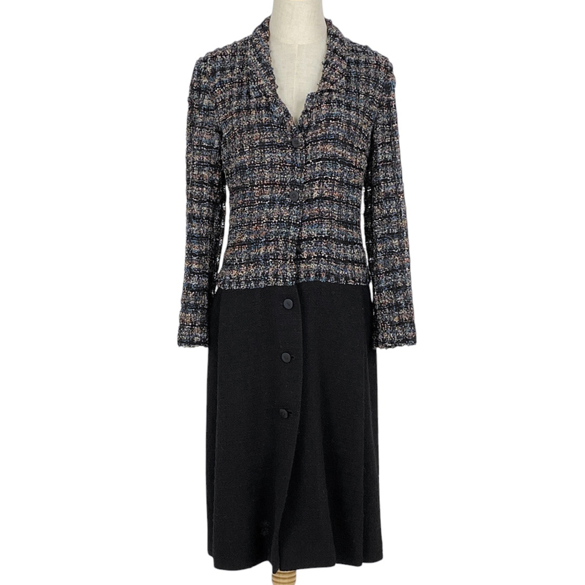 - シャネル CHANEL ツイード ロング コート 切り替え 98A アウター その他コート ウール ピンク ブラック レディース 【中古】