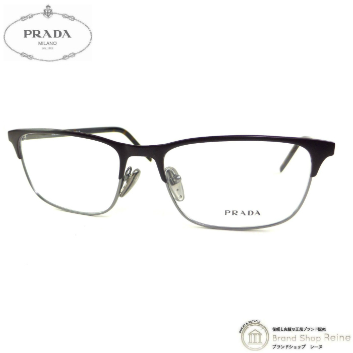 - プラダ (PRADA) メタルフレーム ロゴ メガネ VPR66Y ブラウン×べっ甲柄(新品同様)中古