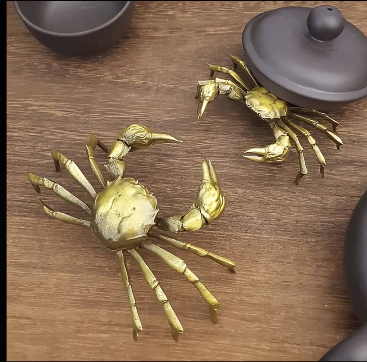 - 銅製 【かに 10cm 金】 カニ 蟹 装飾品 真鍮 金属工芸 置物 文鎮 オブジェ 茶道具 風水 縁起物