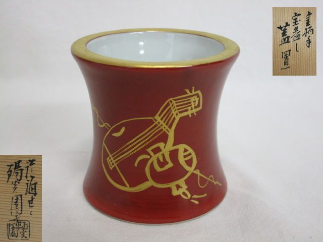 - 雉坂★【 金襴手 宝尽 蓋置 淡海ぜぜ 岩崎新定 陽炎園 共箱 】★茶道具