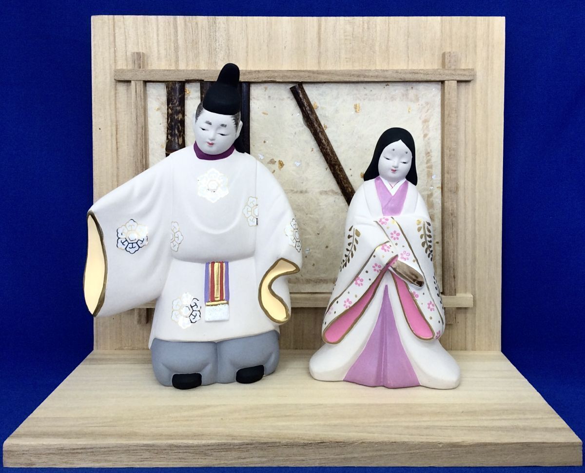 - 雛人形 新源氏びな 立雛 京雛 陶器製 男雛 女雛 公家風 台座付 桃の節句 ひな祭り 人形 飾り 季節行事 外箱付き 中古品 美品 管50957863