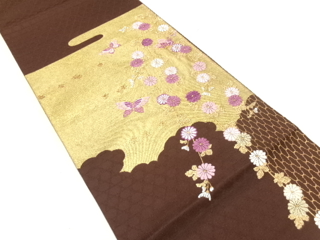 - 美品 じゅらく製 帝王紫 舞蝶枝垂菊織り出し 袋帯 (IBD3K-017)