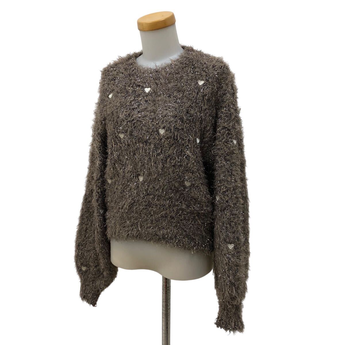 > 9NK004-4 2024年 snidel スナイデル ハート 刺繍 シャギー 長袖 ニット トップス ブラウン ベージュ ラメ レディース 女性用 1
