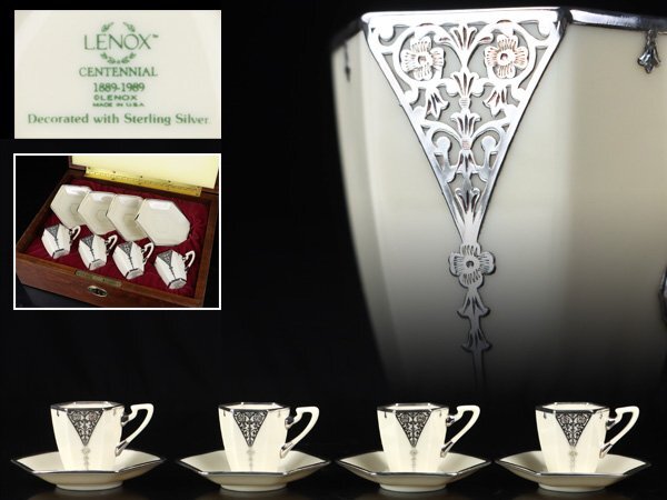 > 魁◆名家コレクション 本物保証 LENOX レノックス 特別限定作品 CENTENNIAL COLLECTION スターリング シルバー 銀彩 カップ&ソーサー 木箱
