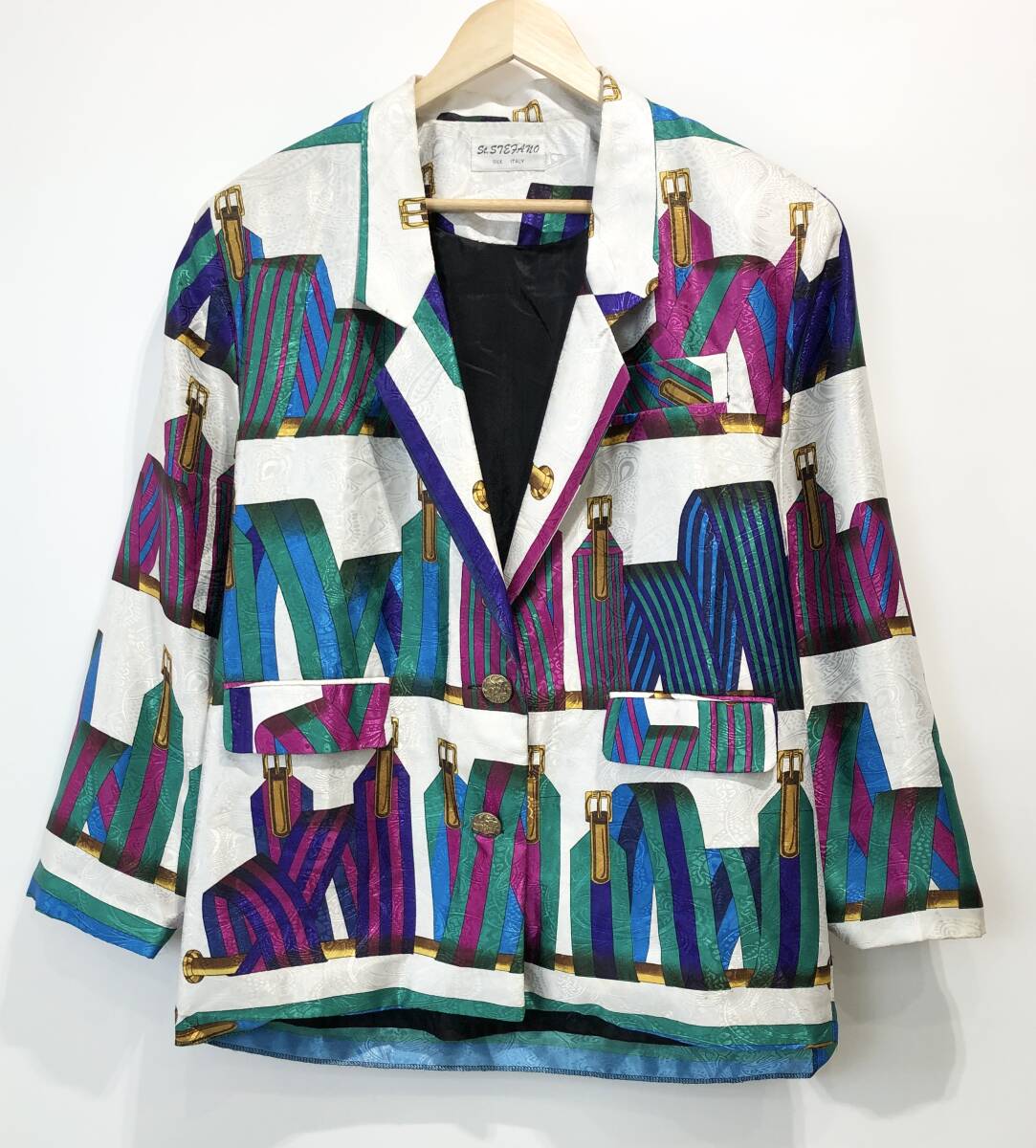 - St.STEFANO 総柄 2B テーラードジャケット シルク マルチカラー 古着 ヴィンテージ レトロ■0924X