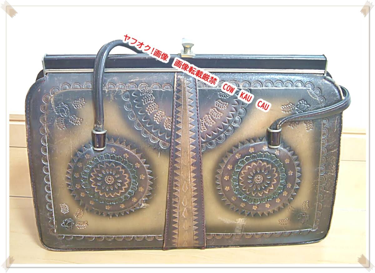 - 革 ハンドバック エモイ 幾何学模様 レトロ 良い作り かばん ◆ 検索 昭和 レザー 皮 インテリア 小物 オブジェ