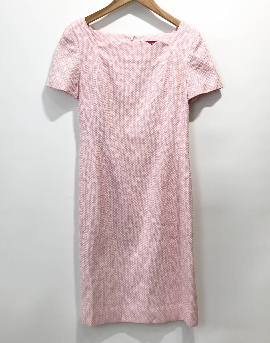 > TAKEO de 365 総柄 ワンピース ドレス ショートスリーブ ひざ丈 ドット柄 ピンク 016301-222 タケオデ365 古着 レトロ SIZE:38■0924Z