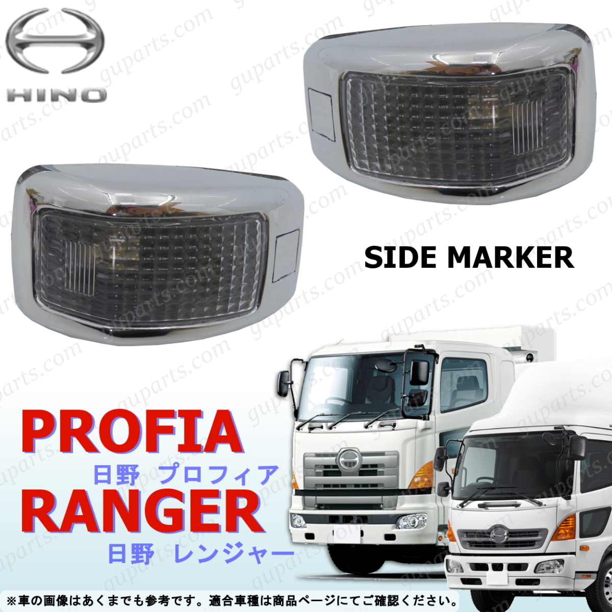 > 日野 レンジャー プロ グランド プロフィア H4~H22 サイド マーカー スモーク 左右 メッキ カバー トリム ドア ライト ランプ ウインカー