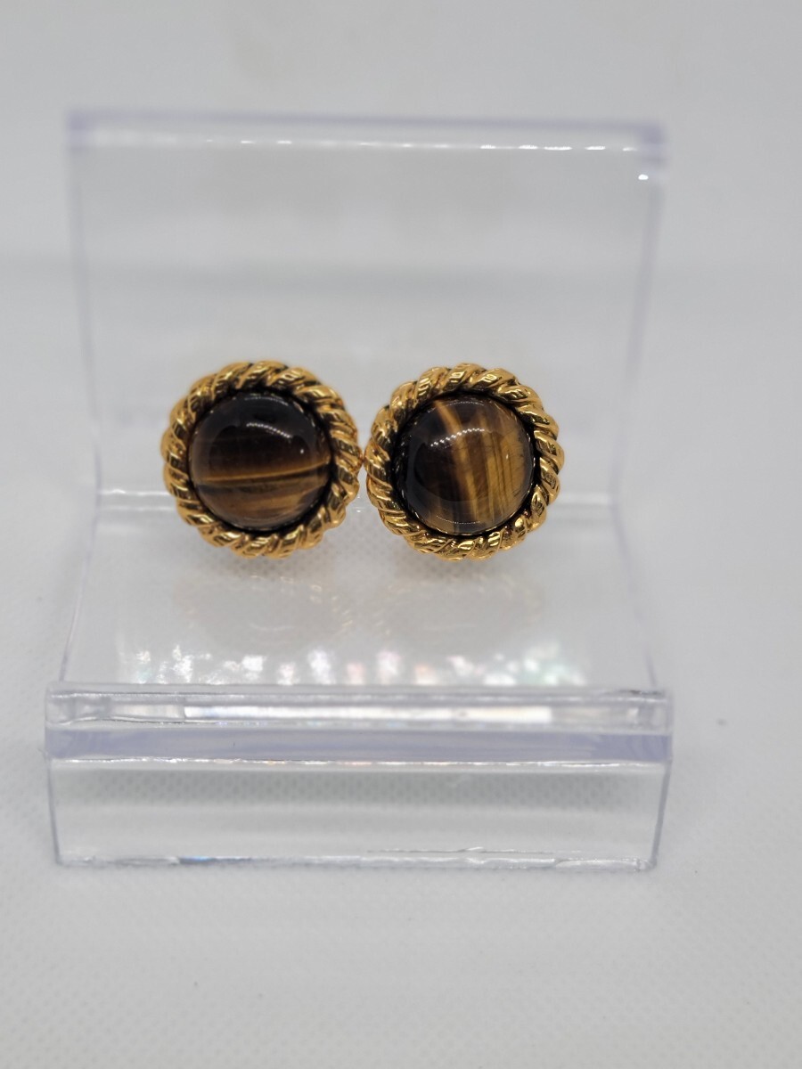 - 1円スタート 正規保証 CHANEL シャネル タイガーアイ イヤリング アクセサリー ゴールド