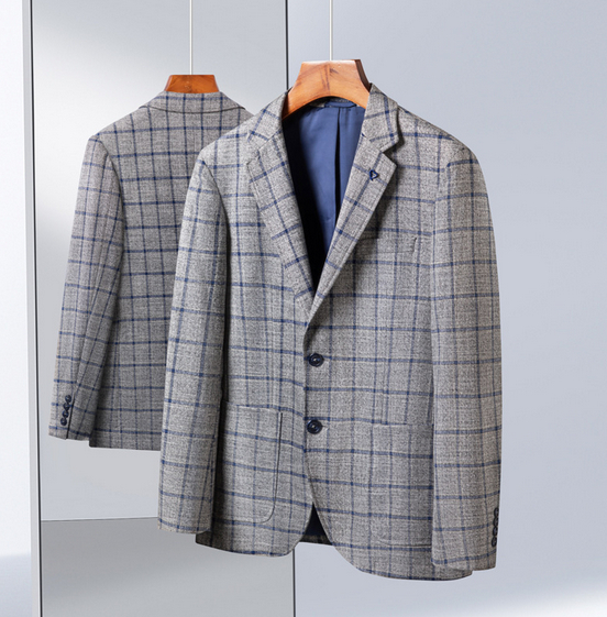 - 人気品 高品質 格子柄 ウール混 テーラードジャケット メンズ スーツジャケット 紳士 中厚 秋冬 カジュアル ブレザー/グレー