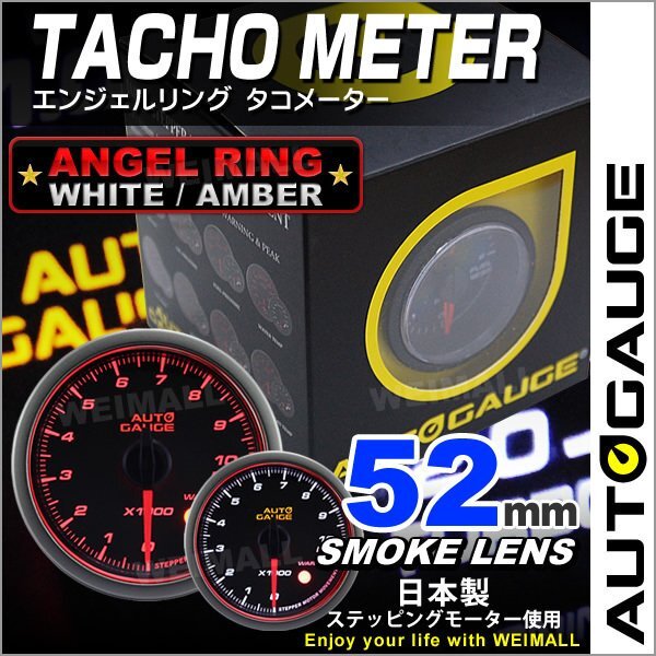 > オートゲージ タコメーター 52mm 52Φ 日本製ステッピングモーター 静音タイプ エンジェルリング LEDバックライト AUTO GAUGE 458シリーズ