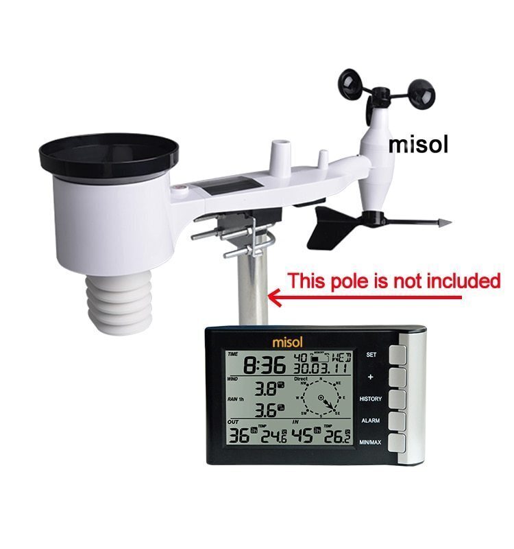 - 風速センサー 気象観測ステーション 環境測定器 計測器 プロ仕様 風速 風向 温度 湿度 雨量 LEDバックライト アラーム付き