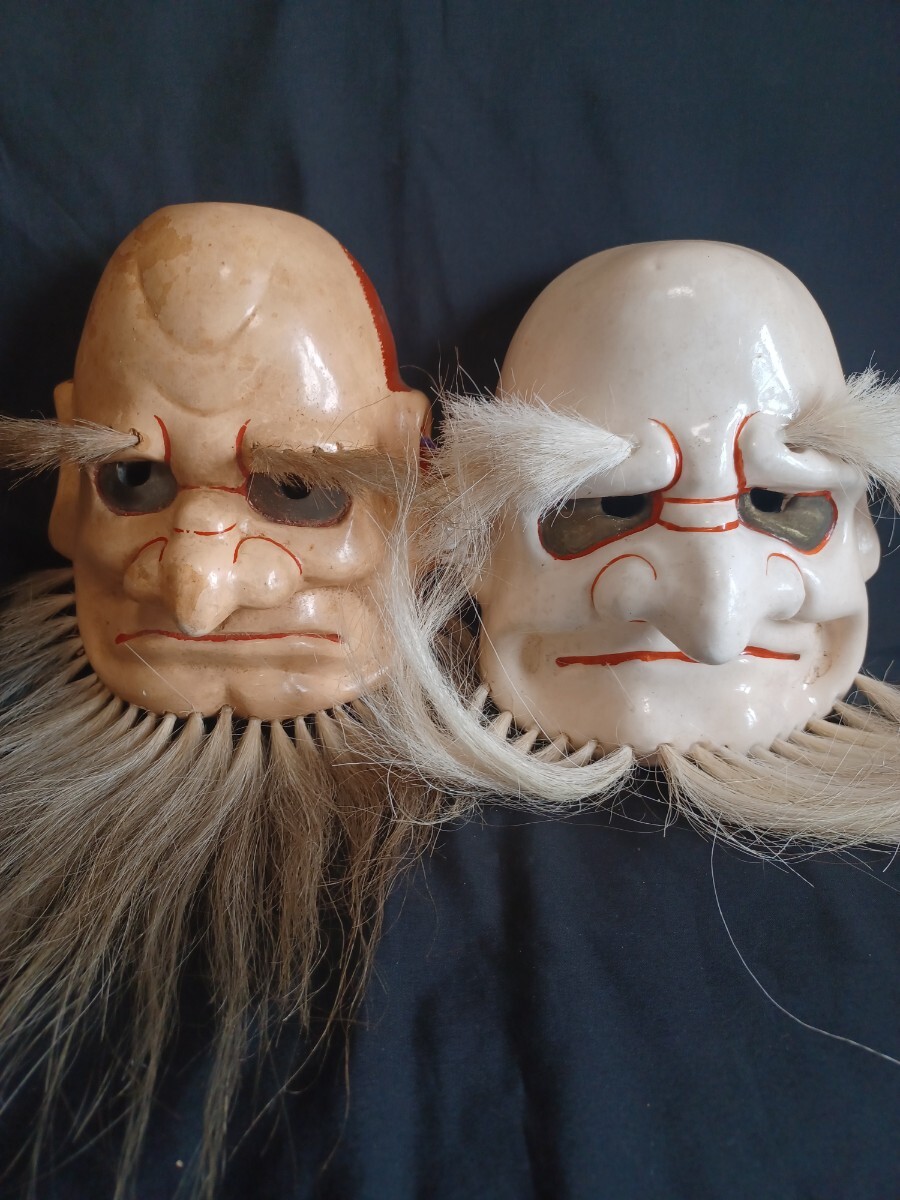 - No.10 コレクター放出品 備中神楽 思兼命 お面 魔除け 木彫り 木彫り面 能面 神楽 細密彫刻 木工芸 箱なし 和風インテリア