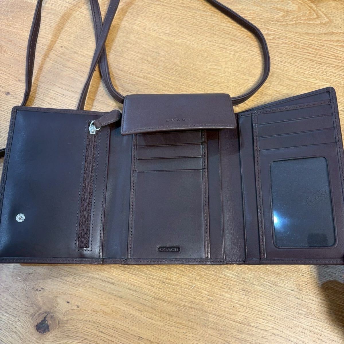- 美品COACH ショルダーストラップ付きマルチケース 茶色 長財布 長札入れ レザー 本革 Ito-a
