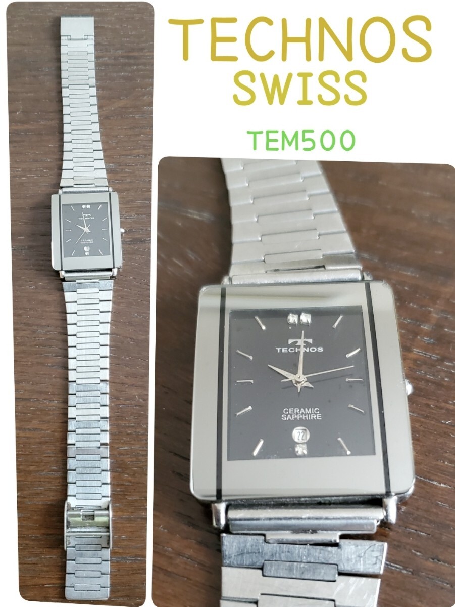 - 送料無料★TECHNOS SWISS TEM500 テクノス腕時計(クォーツ) シルバー ブラック文字盤