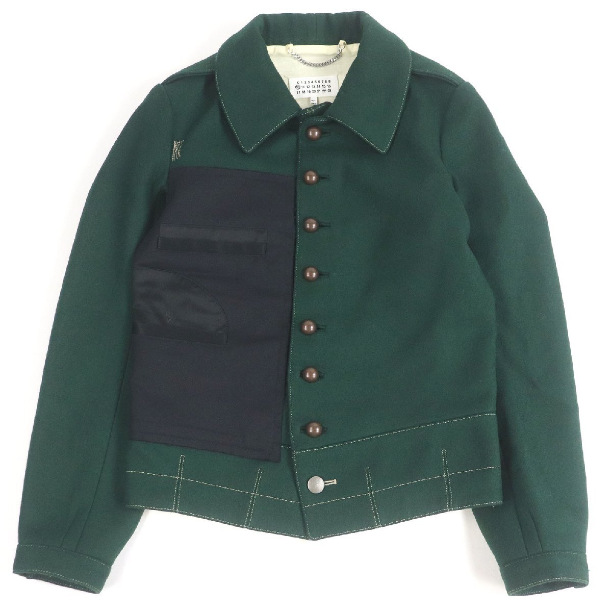 > 極美品□メゾンマルジェラ10 21AW S50AM0522 Contrasting Panel Detail Jacket ウールジャケット グリーン 44 イタリア製 正規品 メンズ