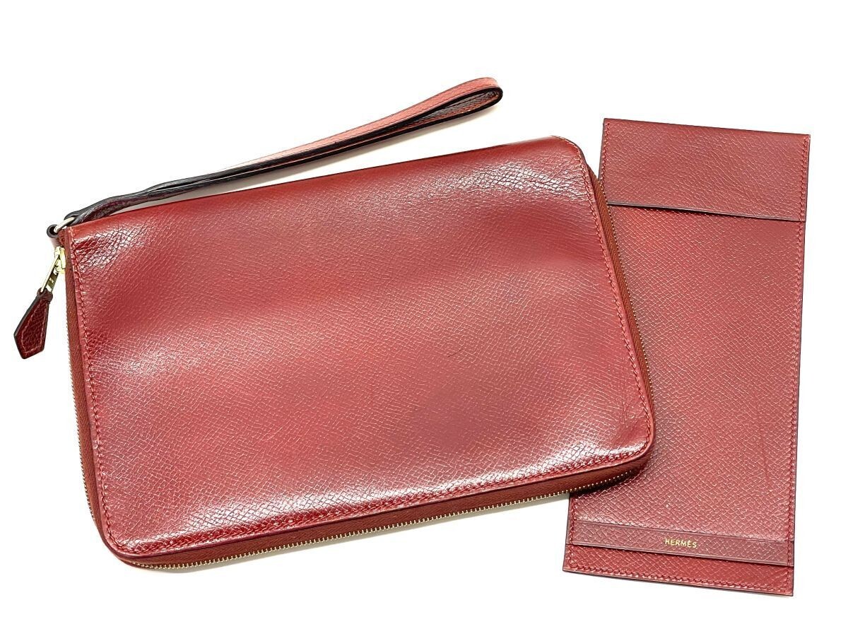 > 【K923】正規品 希少モデル HERMES【エルメス】チャーリー レッド トラベルポーチ トラベルケース 財布にも ヴィンテージ 上級顧客品