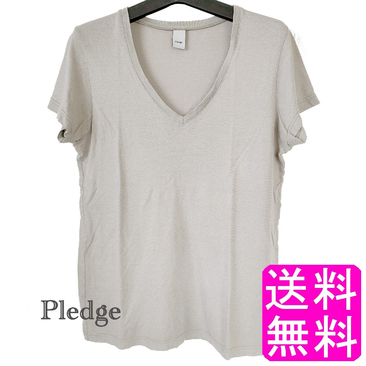 - 送料無料【中古】Pledge プレッジ 半袖カットソー B.GRAY系 サイズ46 Tシャツ 無地 シンプル Vネック 綿 コットン