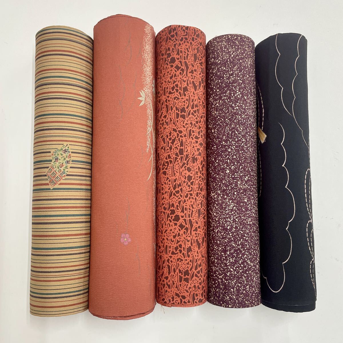 - ◆反司◆a4684【反物5本まとめ売り】ポリエステル 交織 化繊 絹混 小紋 着物 着尺 羽尺 呉服屋 反物 未仕立て リメイク 新品