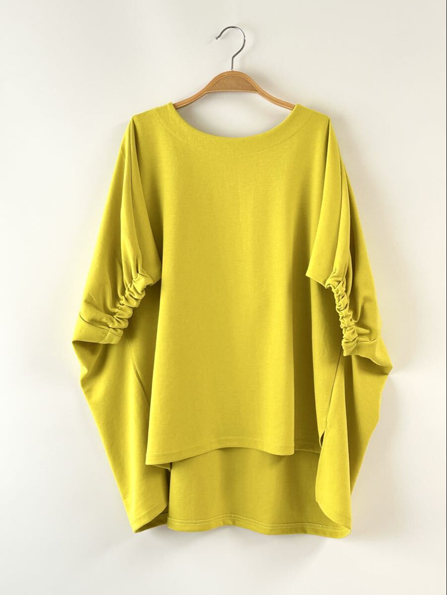 - 新品 ヘムカットギャザーデザイン チュニックトップス プルオーバー イエロー