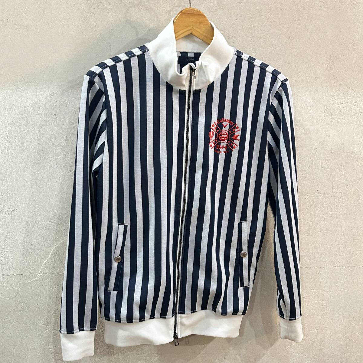 > W32 CALLAWAY / キャロウェイ ストライプ トラックジャケット ゴルフウェア 241-6158502 メンズ Mサイズ 刺繍プリント USED